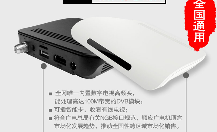 泰信盒子X1是泰信電子又一終端新力作,較上一代泰信盒子而言,同樣采用了泰信獨立開發(fā)的DTVOS操作系統(tǒng),將對終端的數(shù)字電視管控延伸到網(wǎng)絡(luò)電視,并通過一臺智能終端展示給用戶。新產(chǎn)品給用戶耳目一新的創(chuàng)新之處在于,X1是業(yè)界首款在安卓技術(shù)基礎(chǔ)上實現(xiàn)地面數(shù)字電視接收功能的機頂盒。隨著國家文化惠民政策的逐步展開,免費的數(shù)字電視服務(wù)將落實到每家電視用戶,融合地面數(shù)字電視功能的盒子,將會是用戶電視文化娛樂的必然選擇。