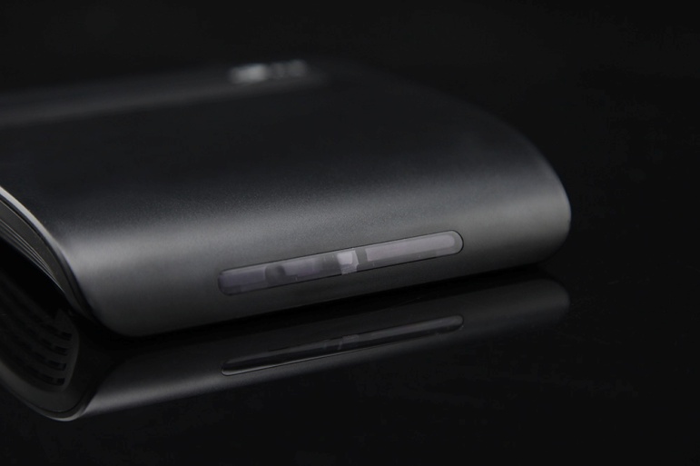 在機身的前側設有電源指示燈和紅外接收窗口,半透明的扁長窗口與機身比較融合,盡顯高端潮流時尚。