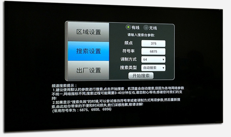 如果插入數字電視智能卡,不能觀看節目,可以進行全頻搜索。