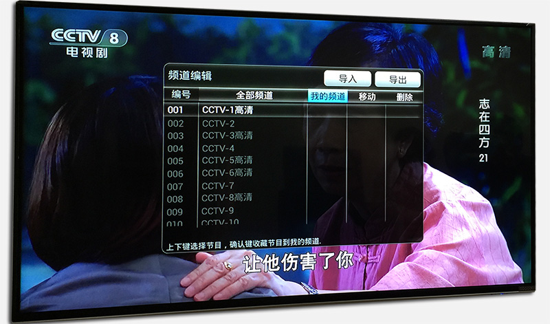 搜索完畢后,所有的電視節目和廣電機頂盒的頻道排序是完全不同的。在電視全屏狀態下,按下遙控器的菜單鍵后,會跳出頻道編輯窗口,此時可以根據用戶喜好對頻道順序、刪減頻道等進行操作,這樣在頻道列表中可以通過分類直接進入,整體來說,廠家考慮非常周全,設計非常人性化。