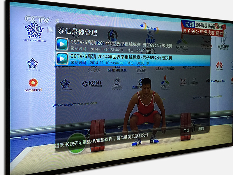 泰信盒子X1還有一個不得不提的功能,那就是電視節目錄像功能,需要在盒子上接入移動硬盤或U盤用來存儲錄像文件,一鍵錄制,簡單、方便、實用,試錄了幾個節目,觀看效果很不錯。簡單說,你選擇好喜歡的節目,連接移動硬盤,此時點擊遙控器上的錄像鍵,操作就這么簡單!
