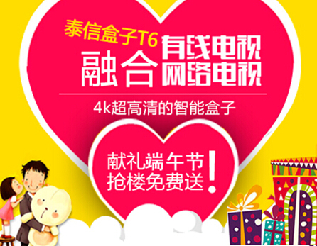 端午小長假即將到來,適逢父親節(jié),這讓很多回家過節(jié)的人頭疼不已,買什么禮物呢?平時因為工作繁忙無法經(jīng)常陪伴父母的你是否有想過在這個特殊的節(jié)日為爸爸送上一份特殊而實用的小禮物呢?泰信盒子專為看電視而生,二十年堅持方便老百姓看電視的理想不動搖,努力創(chuàng)新,推出真正適合父母看電視的盒子。昨日泰信盒子特攜手智能電視網(wǎng)、沙發(fā)管家、奇珀網(wǎng)、高清時代共同推出“泰信盒子獻禮父親節(jié)、端午節(jié),搶樓免費送”活動,抓緊搶一臺,作為雙節(jié)的禮物吧!