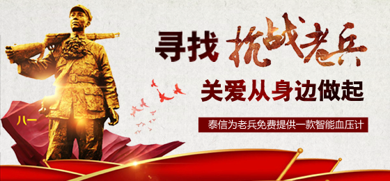 如果您身邊有健在的抗戰(zhàn)老兵,能夠獲悉他們的故事或狀況,請于9月3日之前將聯(lián)系方式告知我們,聯(lián)系電話:400-006-5311。泰信將提供100個智能血壓計表達對老兵的敬意。