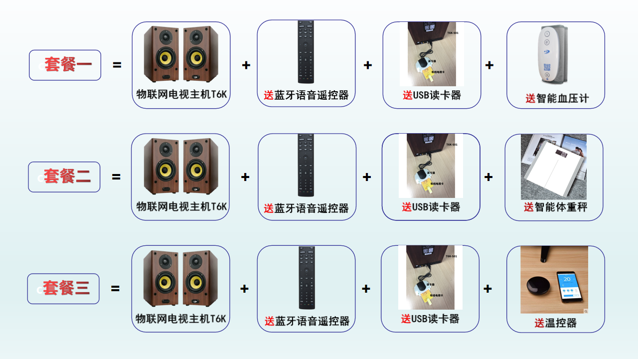 套餐一:送藍(lán)牙語音遙控器、USB讀卡器和智能血壓計(這款血壓計是泰信自主研發(fā)的,一鍵測量、智能加壓,可以語音播報并查看歷史測量數(shù)據(jù))!