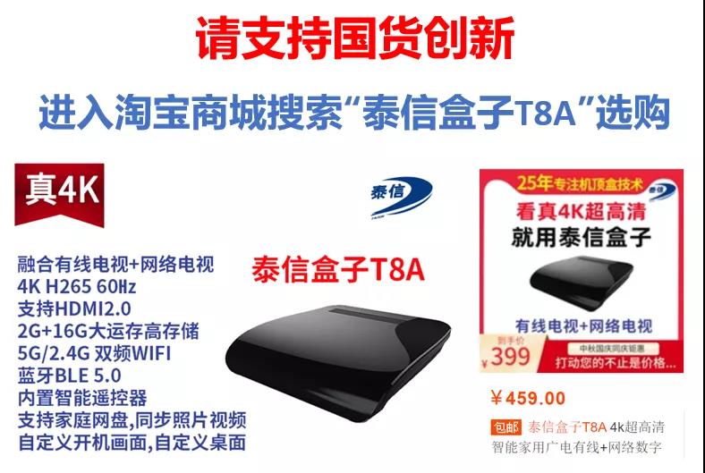 采用下載CA技術的泰信機頂盒在市場上獨立銷售,并且全國通用。可在淘寶網、拼多多、微信公眾號中搜索“泰信盒子”即可找到。也可官網直接購買。