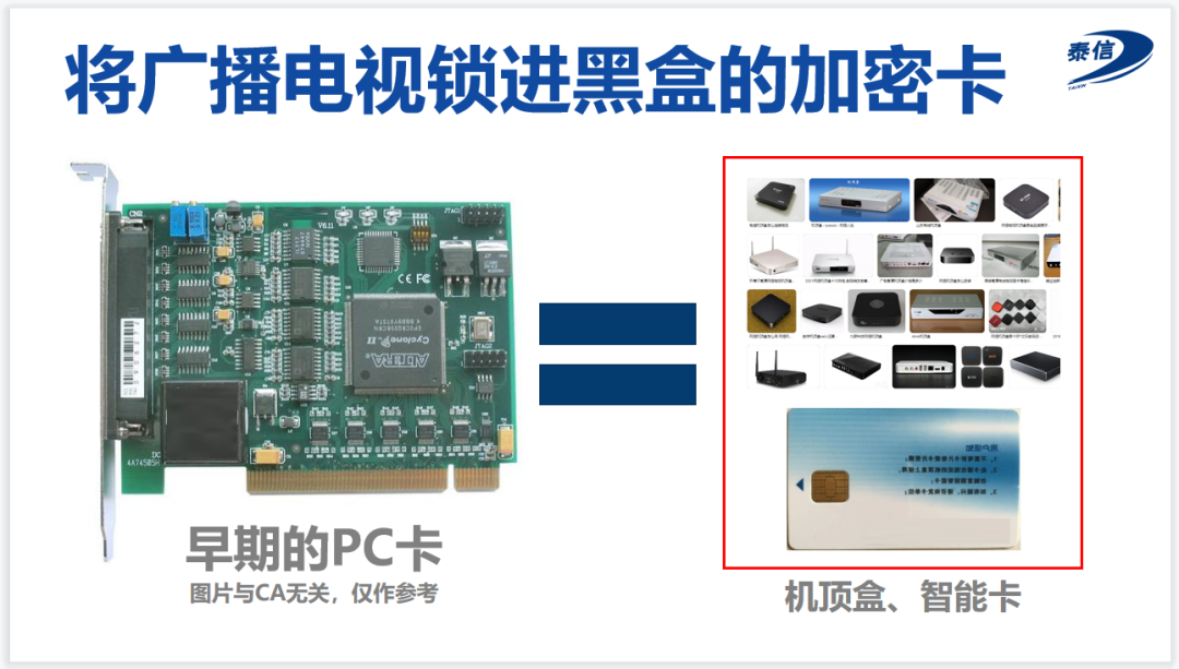 上有一個存儲代碼的FLASH,包含了與智能卡或機頂盒中一樣的加密算法,一旦這個卡外泄,整個CA系統就會被輕易破解。